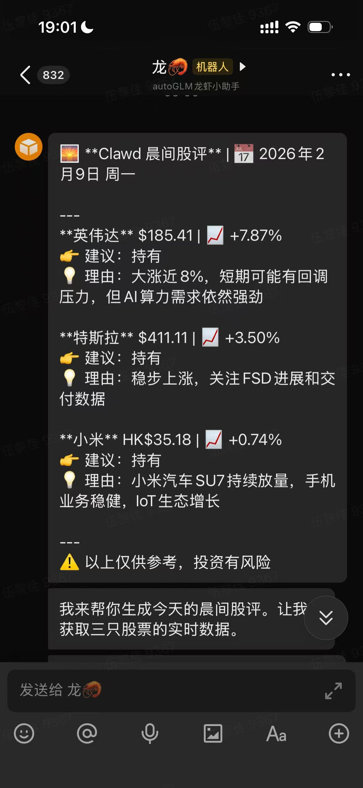 - 如果收到机器人的回复,即代表配置成功!
