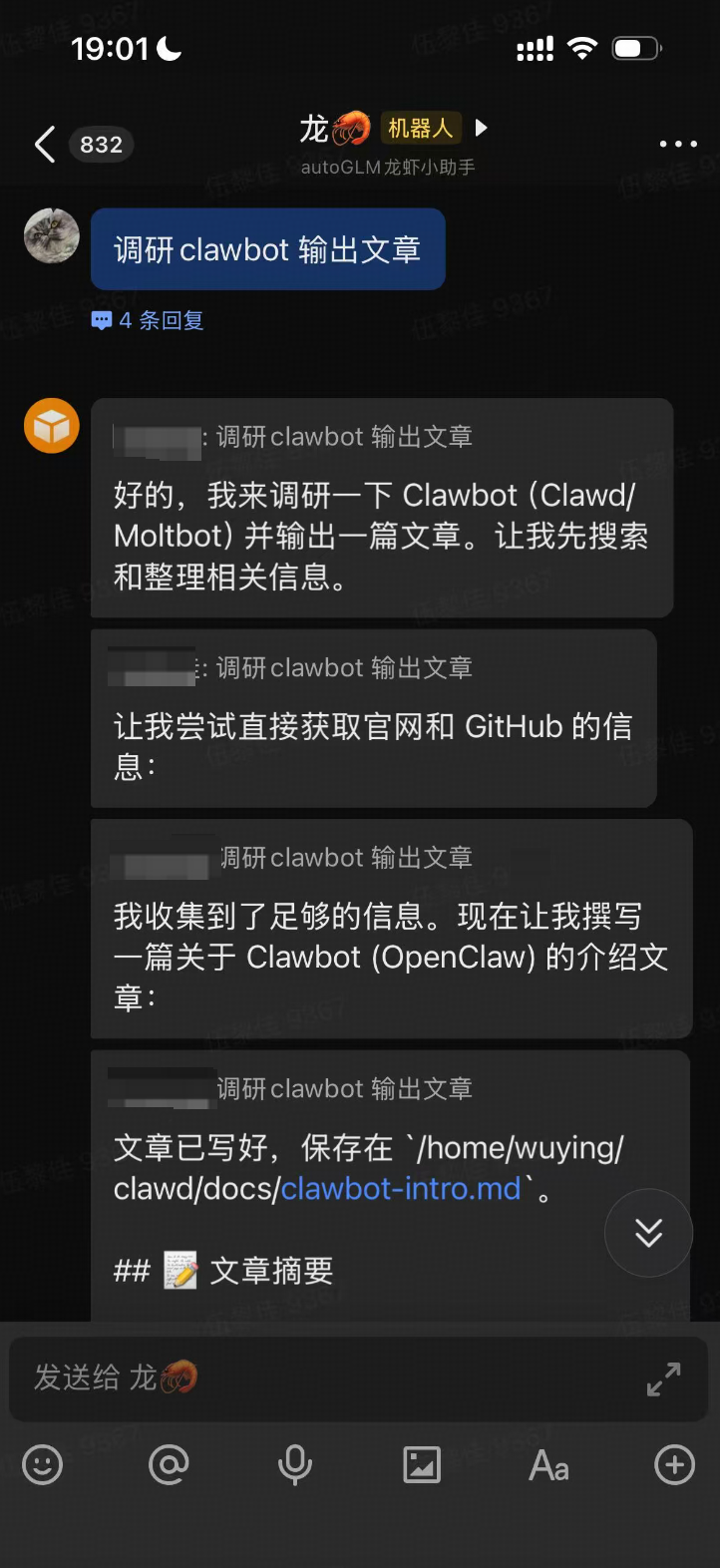 - 跨设备协同:可通过手机下发任务,由服务器端网关执行,并在聊天中返回结果。