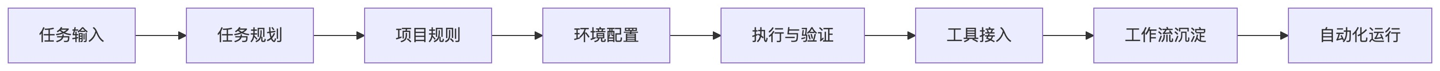 Coding Agent 的能力不仅来自模型本身,更来自于开发者如何设计其使用方式。 在实践中,一个成熟的 Coding Agent 工作流程通常包括: