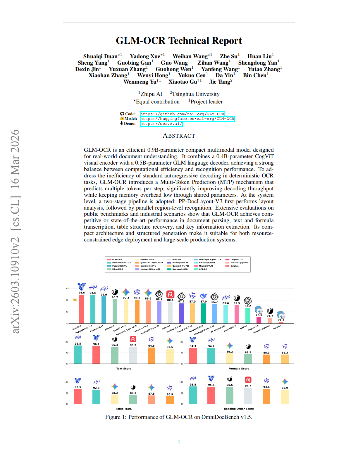 家人们谁懂啊!之前处理复杂文档、多语言表格、数学公式,要么用大模型慢到怀疑人生,要么用传统OCR识别得一塌糊涂,直到我挖到了GLM-OCR——这个0.9B参数的轻量多模态模型,直接把我的文档处理效率拉满,性能还吊打一堆大参数模型!