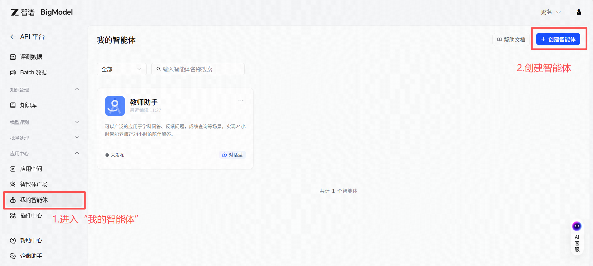 - 点击创建智能体