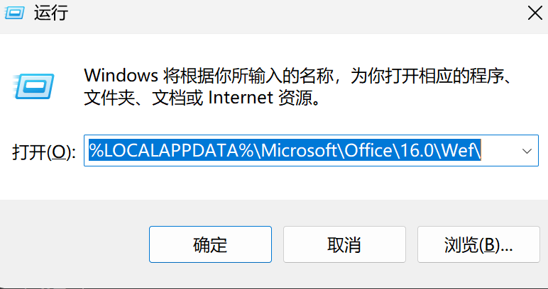 Win + R ,在运行窗口中输入:%LOCALAPPDATA%\Microsoft\Office\16.0\Wef ,按回车键。