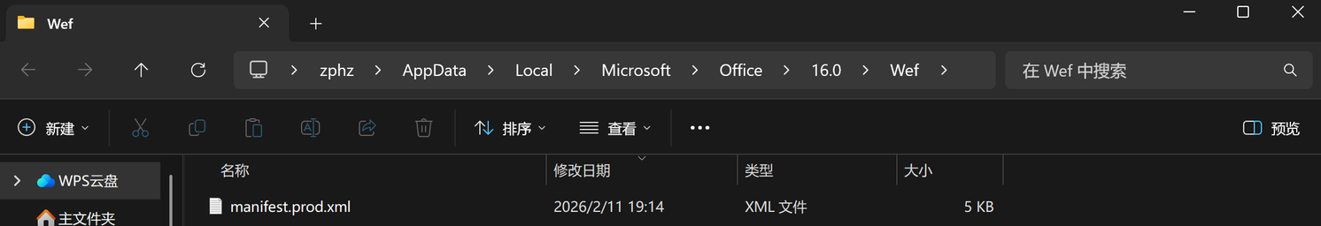 2. 放入清单文件将:manifest.prod.xml 复制到:Wef 文件夹根目录。